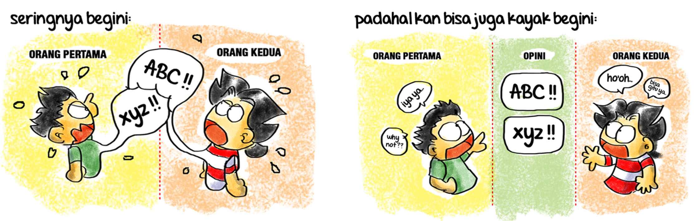 - Nggak boleh merasa paling benar… Gw pikir emang opini seseorang itu nggak ada yang 100% benar, dan nggak ada yang 100% salah.. Karena sejatinya, kebenaran manusia itu sifatnya subjektif..